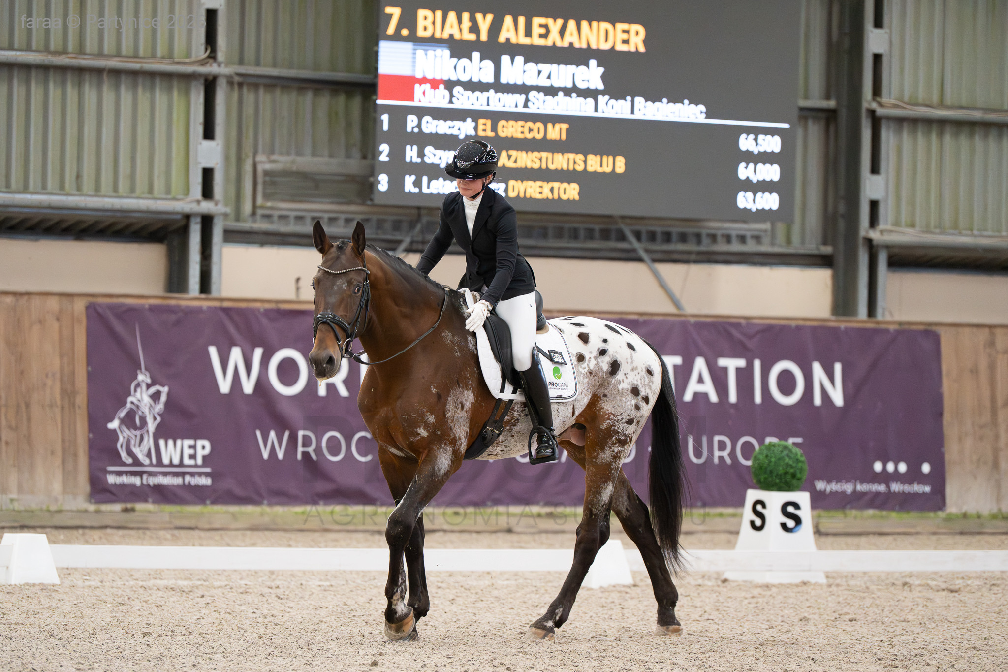 Drugim koniem, którego zabrała na zawody był Biały Alexander, wygrała dwa konkursy w klasie P z wynikami 68,9% i 69,3%.